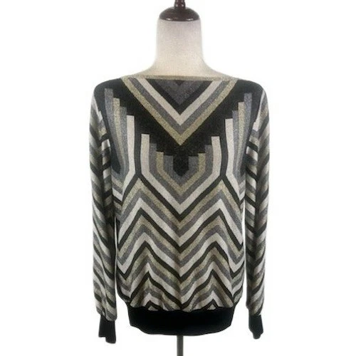 Trina Turk Geometric Chevron Metallic Long Sleeve Sweater Size Medium