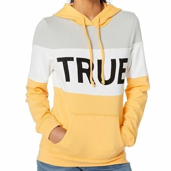 True Religion Hoodie Sweatshirt Top Yellow Color Block Size Small Y2K Vintage