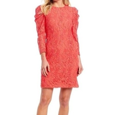 New Vince Camuto Dress Women's Size 10 Coral Lace Puff Sleeve Sheath Long Sleeve