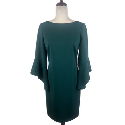 New Vince Camuto Green Dress Bell Sleeve Sheath Cocktail Career Party Size 10