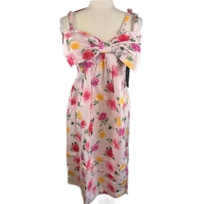 New WILDFOX Laurent Pink Floral Midi Retro Bow Dress Women's Size Large
