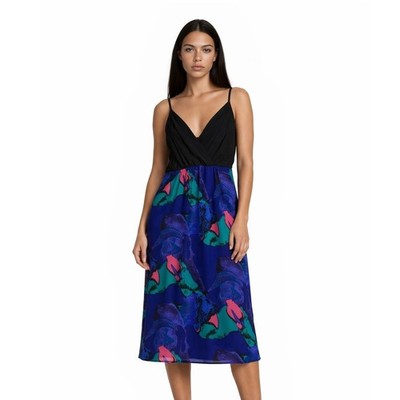 Yumi Kim 100% Silk Dress Women's Size XS Blue Black Abstract Floral Slip Midi
