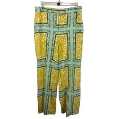 Zara Linen Blend Pants Wide Leg Patterned High Waist Yellow Blue Size M