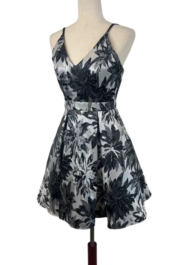 Aqua Brand Dress Floral Fit & Flare Cocktail Dress Black Silver Size 0 $458