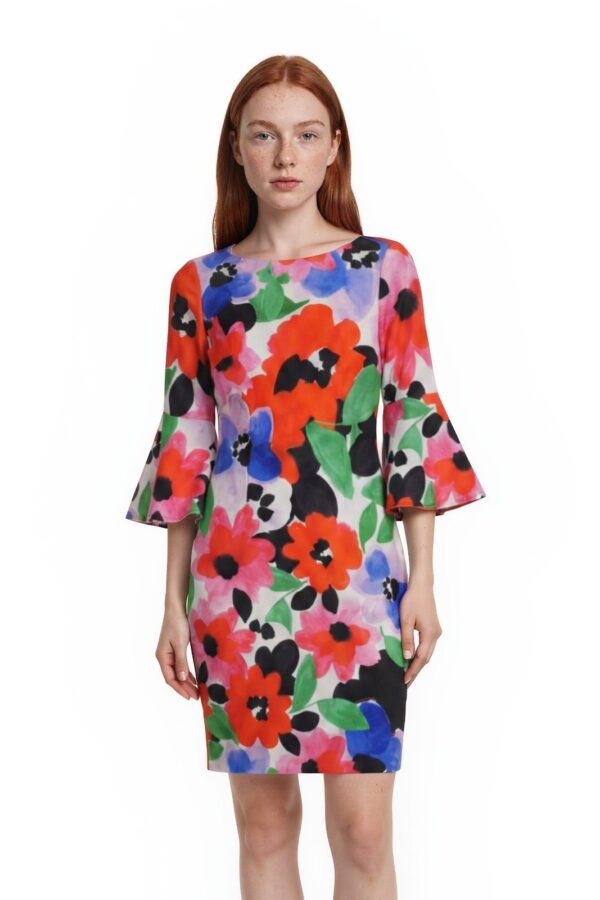 NEW Calvin Klein Floral Sheath Dress Women's Size 4 Multicolor Bell Sleeve