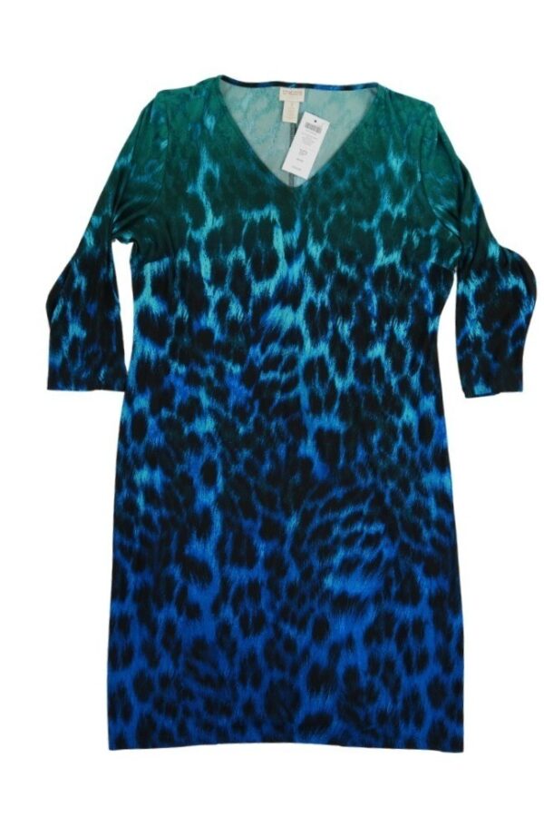 New Chicos PT Dress Womens Size 1 Petite US Medium Ombre Animal Print V Neck