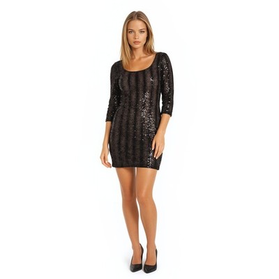 New Guess Bodycon Sequin Dress Women's Size 8 Black Nude Scalloped 3/4 Sleeve