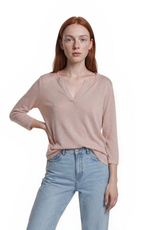 New Talbots Petites Top Women's Size Small Pink Linen 3/4 Sleeve