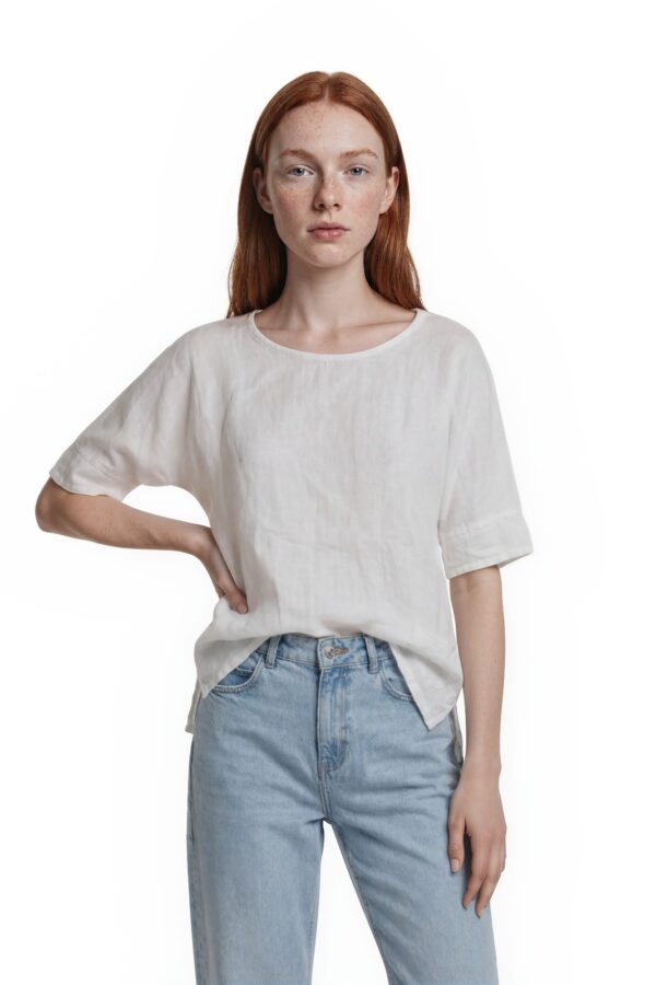 NWT Coton Frais Del Sol Tunic Women's Size Small White Linen Asymmetrical Hem