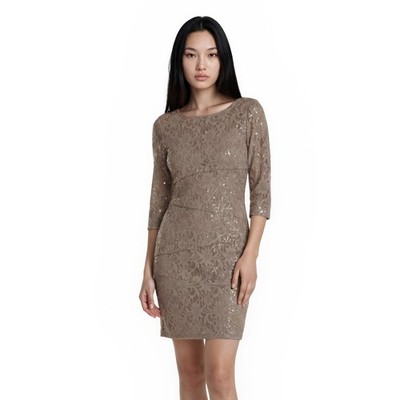 NWT Ronni Nicole Cocktail Dress Women's Size 12 Tan Lace Sequin Tiered Sheath