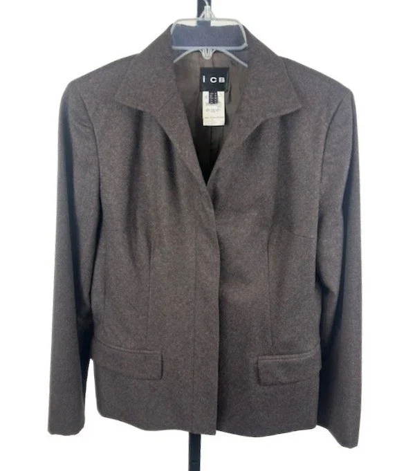 Vintage ICB Brown 100% Wool Collared Career Blazer Women's Size 8