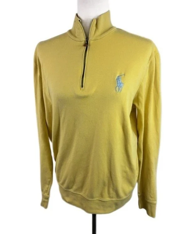 Vintage Polo Ralph Lauren Quarter Zip Top Shirt Yellow Sweatshirt Size Medium