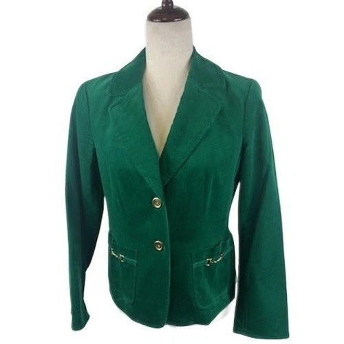 Vintage Talbots Green Corduroy Equestrian Horse Bit Blazer Jacket Size 6P Petite