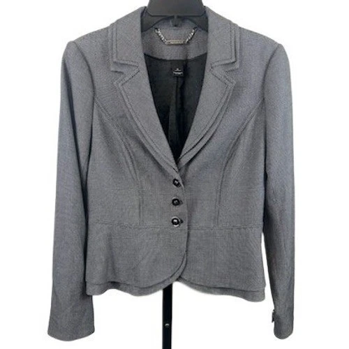 White House Black Market Blazer Women's Size 6 Gray Houndstooth Peplum Jacket