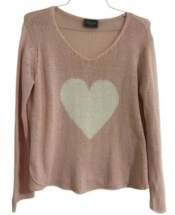 Wooden Ships Pink Knit Heart V-Neck Sweater Size Medium