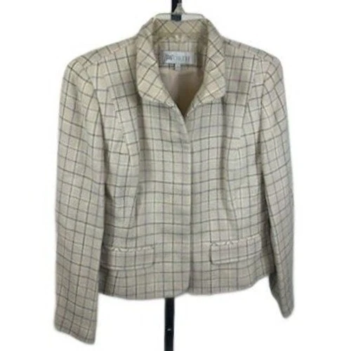 Worth Women's Plaid Wool Blend Blazer Jacket Neutral Classic Size 8 Vintage