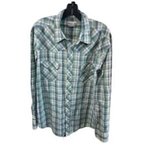 Wrangler Wrancher Western Plaid Shirt Green Blue Long Sleeve Mens Size XL Pearl
