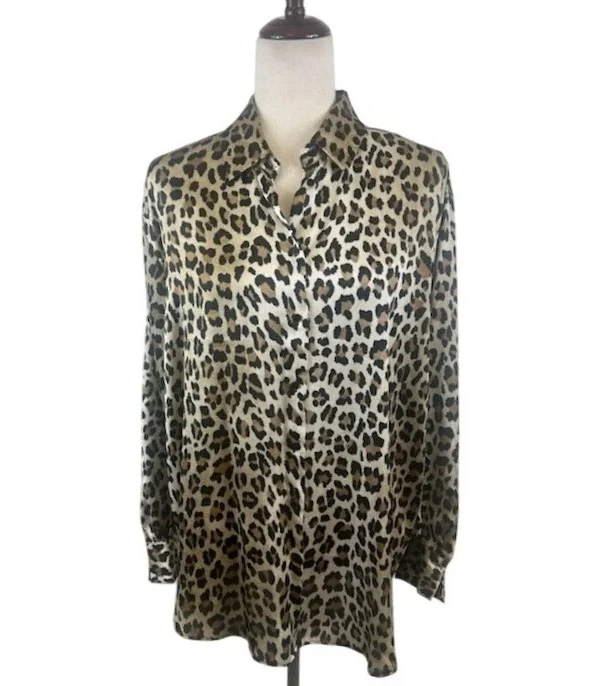 ZARA Blouse Women's Size Large Animal Print Long Sleeve Button Top Blouse Y2K