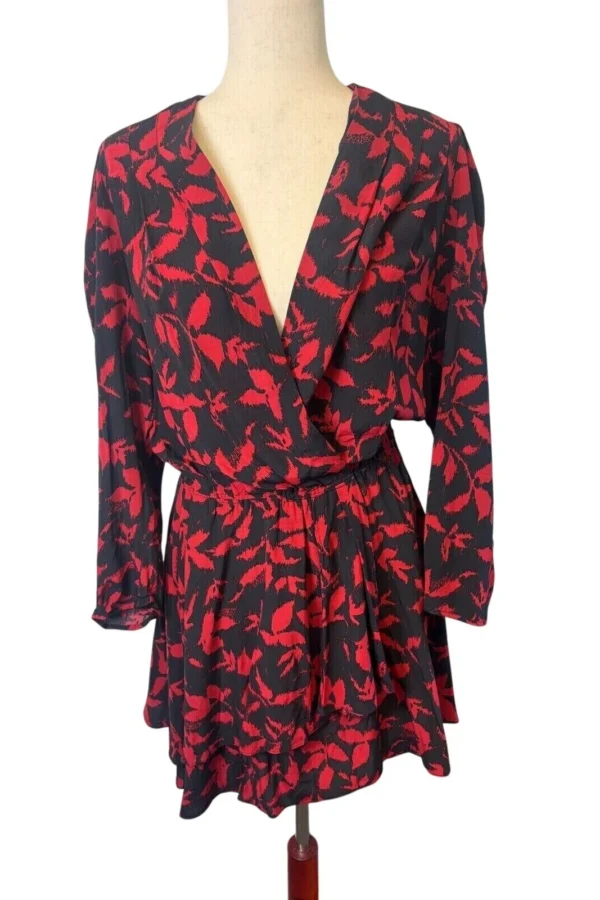 ZADIG & VOLTAIRE Rogers Red Black Crepe Tiered Mini Dress Women's Size Large