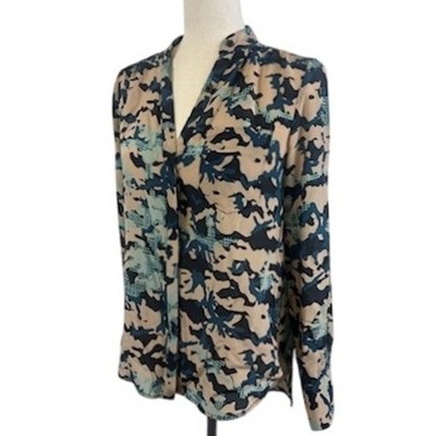 Rebecca Minkoff Camouflage Camo Print 100% Silk Long Sleeve Blouse Top Size XS