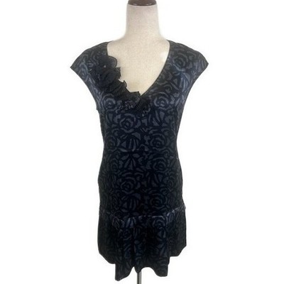 Rebecca Taylor 100% Silk Dress Rose Print Ruffle Detail Party Cocktail Size 4