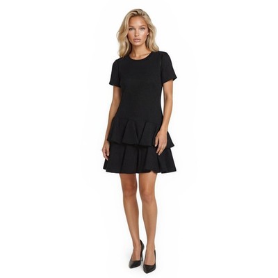 Rebecca Taylor Dress Women's Size 8 Black Textured Grid Ruffle Feminine Classic