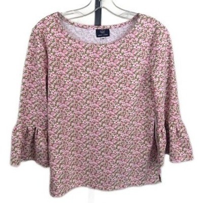 Sailor - Sailor Floral Bell Sleeve Blouse Pink Green Scuba Women's Size Medium