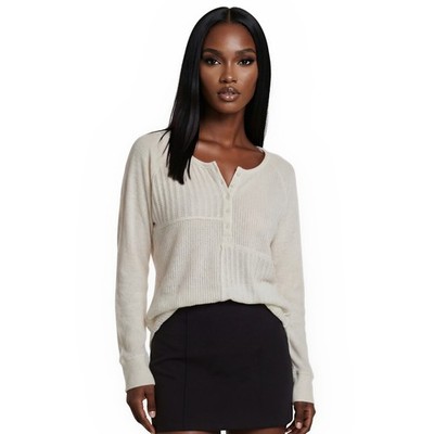 Saturday Sunday Anthropologie Top Women's Medium Cream Patchwork Henley Thermal
