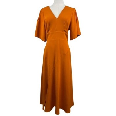 SETRE Orange Midi Dress V Neck Flutter Sleeve Career Party Dress Size Large