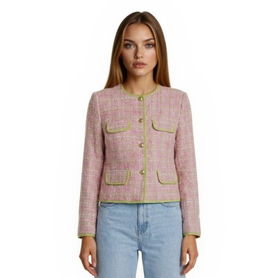 Silkland Petite Pink Tweed Blazer Womens Size 14P Pink Silk Blend Vintage Button
