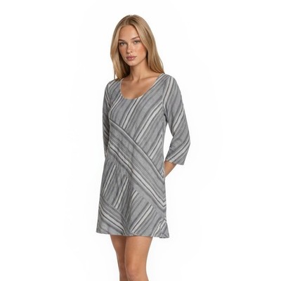 Soft Surroundings Dress Women's Size Large Blue White Striped Shift 3/4 Sleeve
