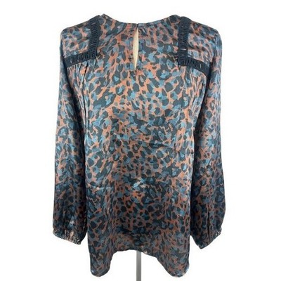 Soft Surroundings Leopard Print Long Sleeve Blouse Top Womens Size Medium