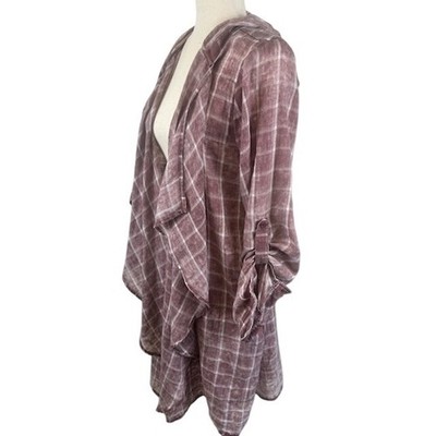 Soft Surroundings Plaid Hooded Ruffle Top Open Long Cardigan Super Comfy Medium