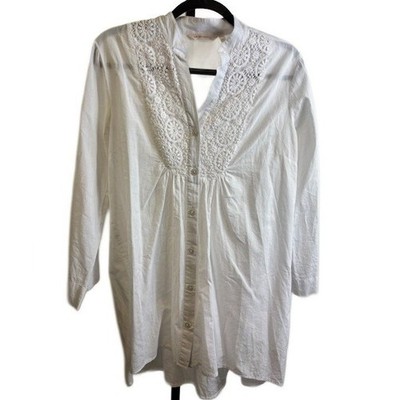 Soft Surroundings Tunic Top Women's Large White Crochet Lace Button Romantic