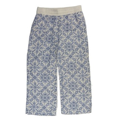 Soft Surroundings Linen Pants Women's Size Large Blue White Paisley Wide Leg
