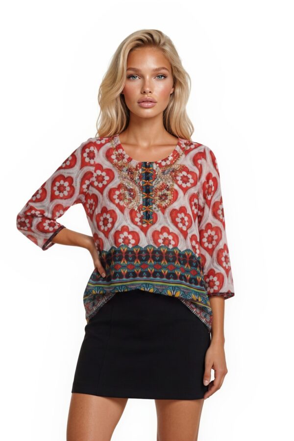 Soft Surroundings Tunic Top Blouse Women's Size Large Red Heart Beaded Boho