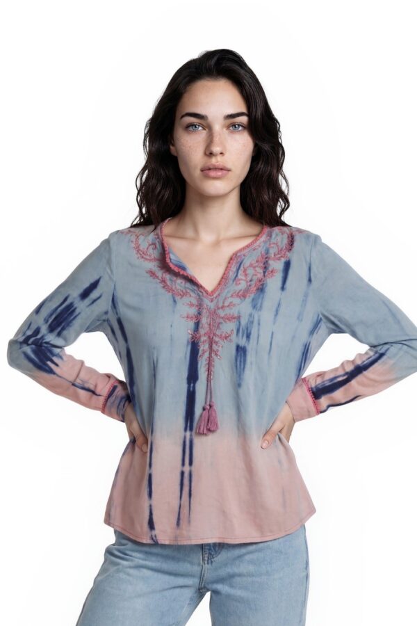 Soft Surroundings Top Women's Size Small Blue Pink Tie Dye Embroidered Tunic