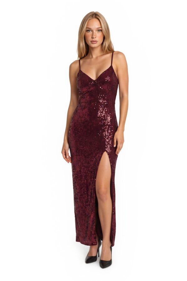 B Smart Gown Women's Size 7/8 Burgundy Sequin Sweetheart Neck Slit Maxi Dress