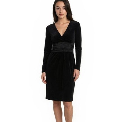 Suzi Chin Maggy Boutique Dress Women's Size 10 Black Velvet Ruched Waist Lined