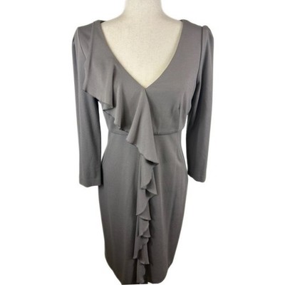 Suzi Chin for Maggy Boutique Gray Taupe Ruffle Long Sleeve Dress Size 10