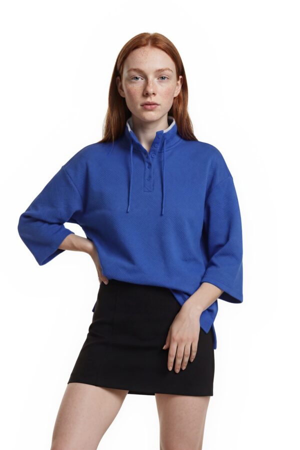 T by Talbots Pullover Top Womens Size XL Blue Quilted Chevron Mock Neck