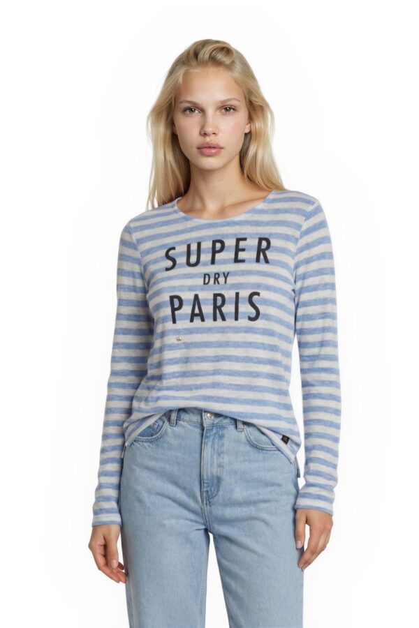 Superdry Paris Top Women's Size Large Blue White Striped Slub Knit