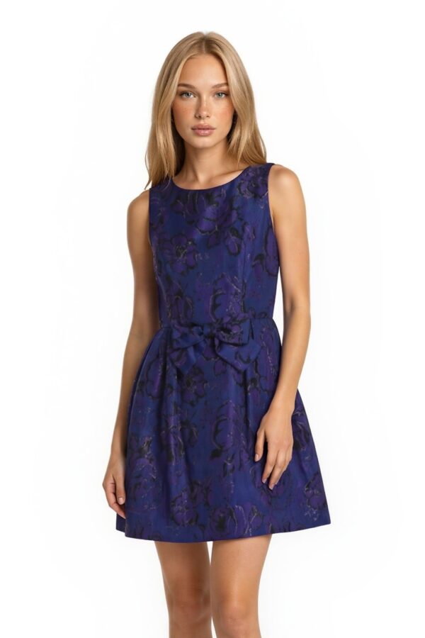 Tahari Arthur S Levine Dress Women's Size 4 Blue Purple Floral Brocade Bow