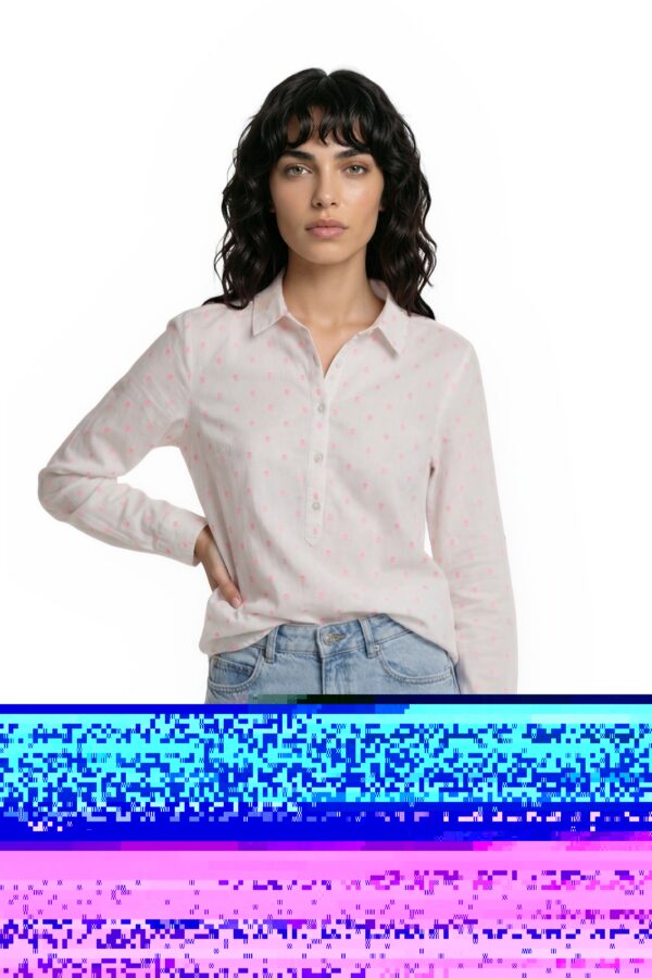 Talbots Petite Blouse Women's Size Medium MP White Pink Swiss Dot Popover Top
