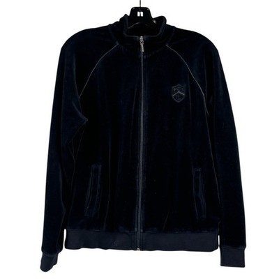 Vintage Lauren Ralph Lauren Active Size Large Black Velour Full Zip Track Jacket
