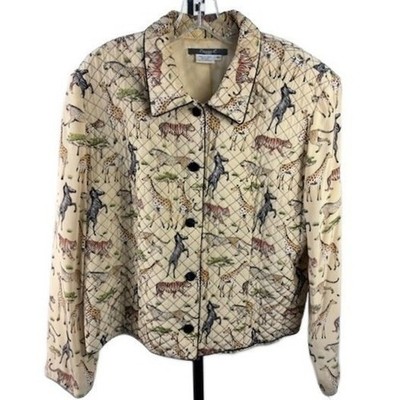 Vintage Maggy L 100% Silk Jacket Women's Size 16 Safari Animals Quilted Blouse