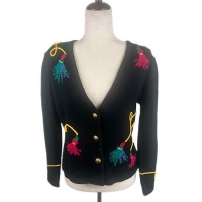 Vintage Y2K Susan Bristol Petites Cardigan Sweater Embroidered Tassel Medium