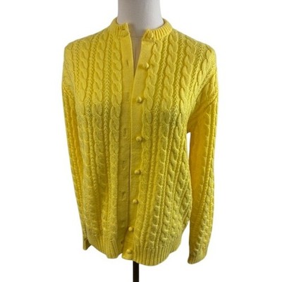 Vintage Susan Bristol Cardigan Sweater Yellow Cable Knit 80s Wool Blend Size XL