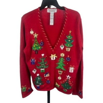 Vintage Tiara International Red Christmas Tree Cardigan Sweater Size Large
