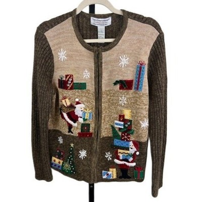 Vintage Tiara Brown Santa Cardigan Sweater Christmas Collection Size Large